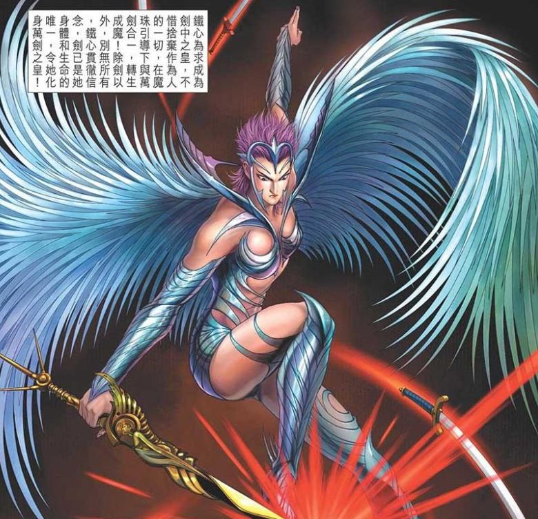 漫畫第一部結尾的時候,鐵心跟隨玄天邪帝來到了劍冢,嫉恨,不甘的負面情緒讓鐵心墮入了魔道,而她的身邊恰好有着一顆魔珠,與無數的神兵殘骸,兩者結合起來,形成了一件造型奇特的魔兵,那就是無妄。