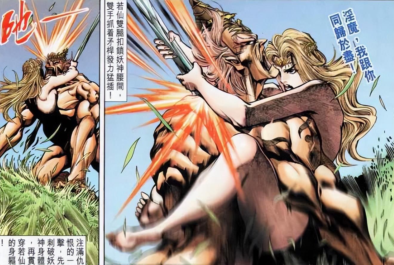 若仙公主趁機抓住長矛,在交合狀態下,將長矛狠狠的刺入了妖神的身體,妖神也是個奇葩,被攻擊了,竟然還想着與若仙公主繼續交合,最後更是用妖術,將自己,若仙公主,長矛融合在一起,變成了一把琉璃魔刀。