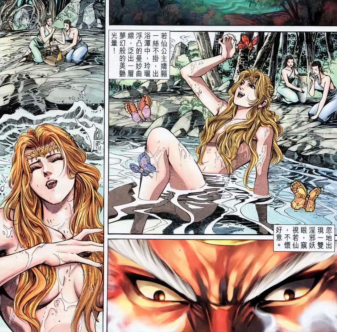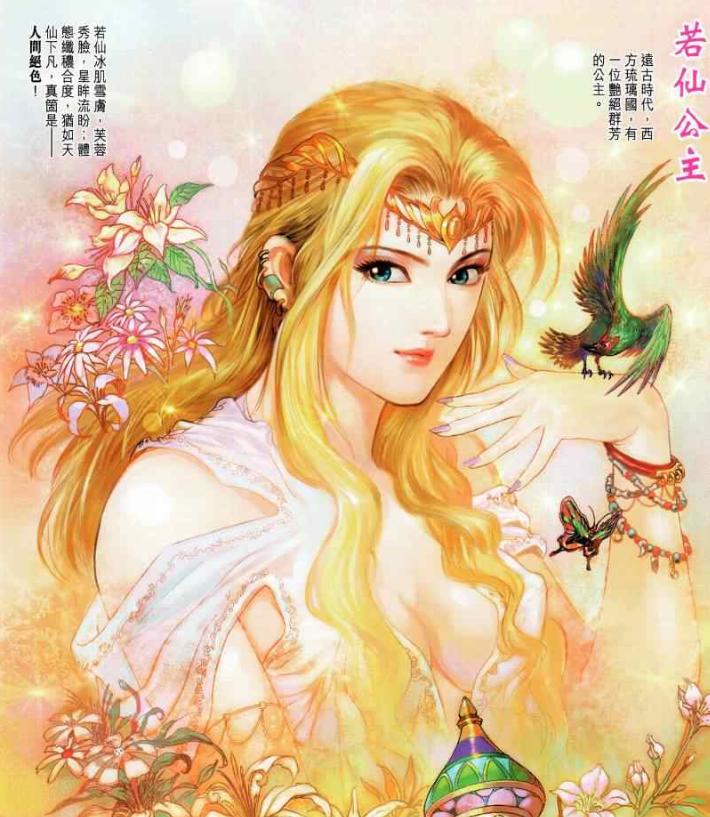 若仙公主,生活在遠古時代的西方琉璃國,冰肌雪膚,芙蓉秀臉,是真正意義上的人間絕色,漫畫中的她,因爲容貌過於出衆,被婆羅妖神看中,最後被迫獻身於妖神,他的愛人看到後,憤怒不已,以長矛攻擊妖神。