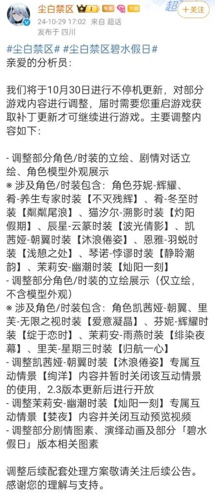 近日不少國內遊戲紛紛發表通告,向玩家致歉並告知將會有一系列調整,在10月底的更新中會調整優化,它們的角色立繪、皮膚和劇情對話將會有大的變動。