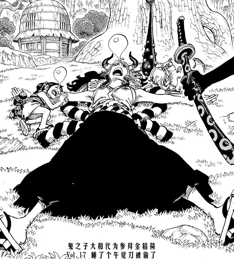與此同時,在扉頁故事裏,霜月康家的名刀居然被盜,而偷刀的神祕人物正是在大和麪前作案,這無疑表明他擁有極爲強大的實力,畢竟大和的見聞色霸氣沒能阻止他。此人究竟是誰?他爲何能從大和手中奪走刀?他是百獸海賊團中的敗將,如凌空六子或三災之一嗎?