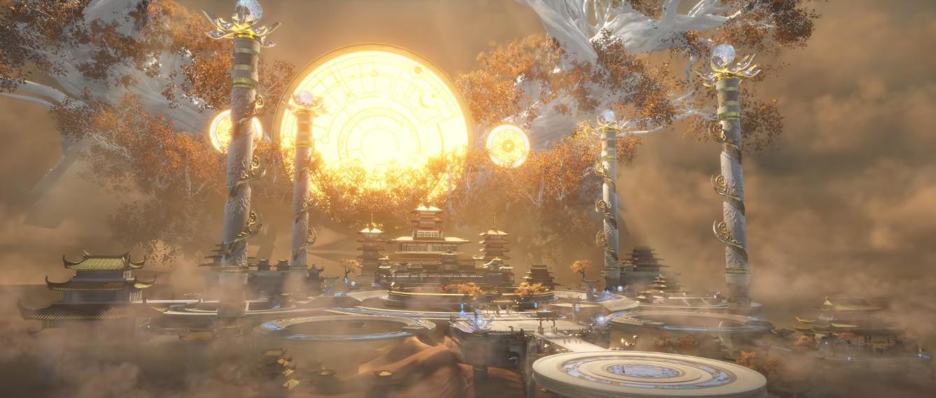 但是更重要的是,仙宮的每一處宮殿,都是用靈石通體打造而成了,極其的富麗堂皇。四條盤龍玉柱,後面是通體潔白的巨樹,長着金燦燦的枝條枝葉,還有極其耀眼的圓輪照耀,散發着濃濃的金色光芒,下面雲霧遍佈,樓宇衆多,讓人眼花繚亂,極其的漂亮。