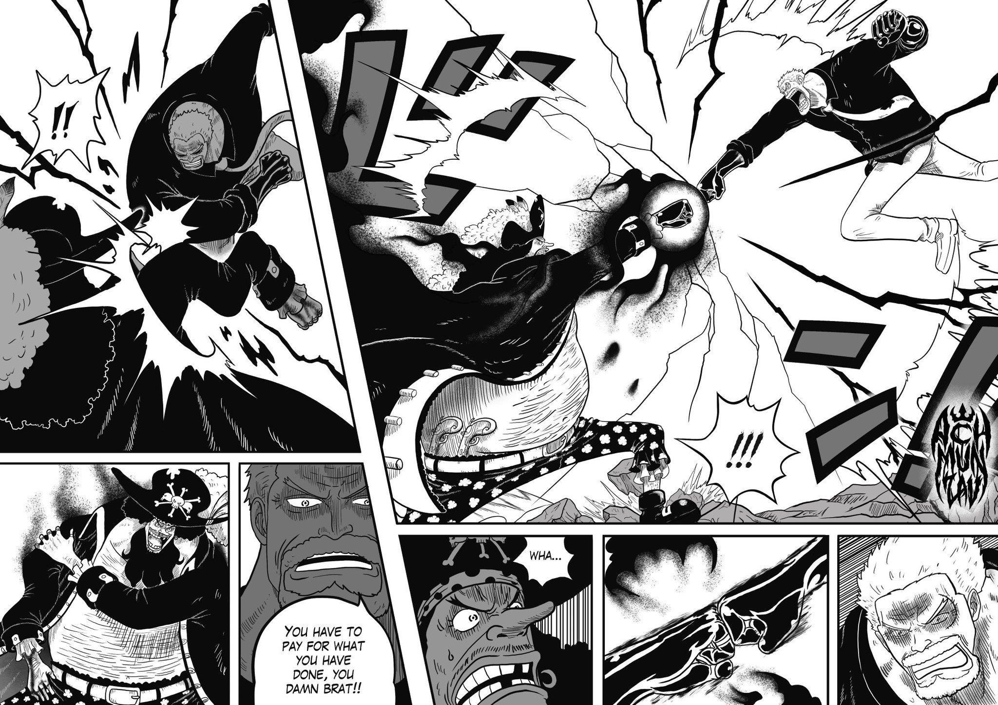 時機一到,青雉放出卡普,並通過自殘誘使黑鬍子現身。兩位強者交鋒,展現出驚人的實力,但卡普在霸氣的運用上更勝一籌,輕鬆壓制了黑鬍子的暗暗果實與震震果實。