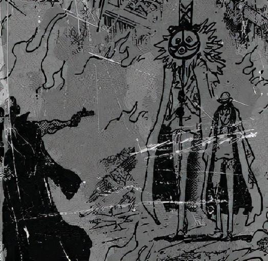 擊敗燼後,索隆竟然開始對峙一個手持長鐮刀的骷髏臉白色死神,百獸海賊團中貌似是沒有這樣一個角色,所以這個死神,應該就是來索命的死神,而索隆現在的狀態應該是昏迷後,靈魂上的劇情,類似悟空大鬧地府。