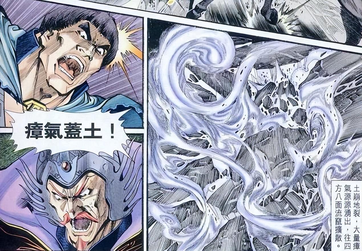 按照漫畫中的說法,這種瘴氣,是天然所生,呈現灰白色,腐蝕性極強,任何人吸入,都會在一瞬間死亡,而且死亡之後,屍體還會發生變異,變成失去意識的行屍走肉,被這羣行屍走肉抓傷的人,同樣會受到感染,變成怪物,有點類似於《生化危機》中的病毒。漫畫中,神算子一行人,進入泰山時,足足有幾百人,然而在瘴氣蓋土這一關,就死的只剩二十餘人,可見這種瘴氣的可怕。