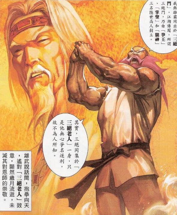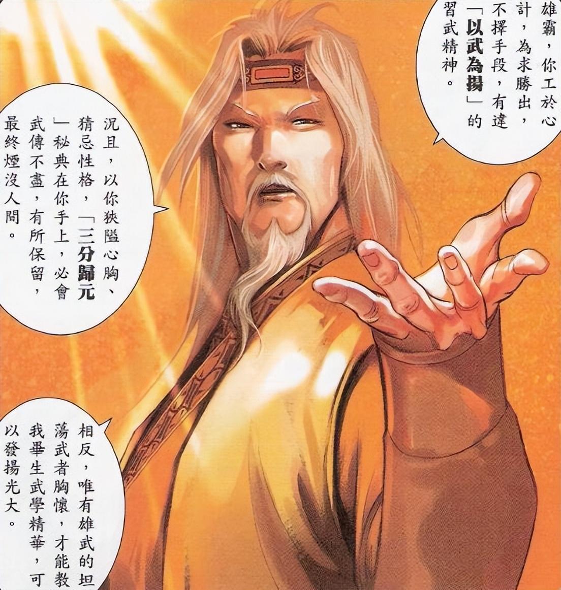 雄霸的三絕,其實是傳說中的三絕老人傳授給他的,按照漫畫中的說法,三絕老人天賦極高,不僅將三絕修煉到大成境界,還將三門武功融合爲一,創造出了一門名爲三分歸元的神功,這裏大家要注意,三絕老人的絕學是三分歸元,並非是三分歸元氣,兩門武功有本質上的區別。