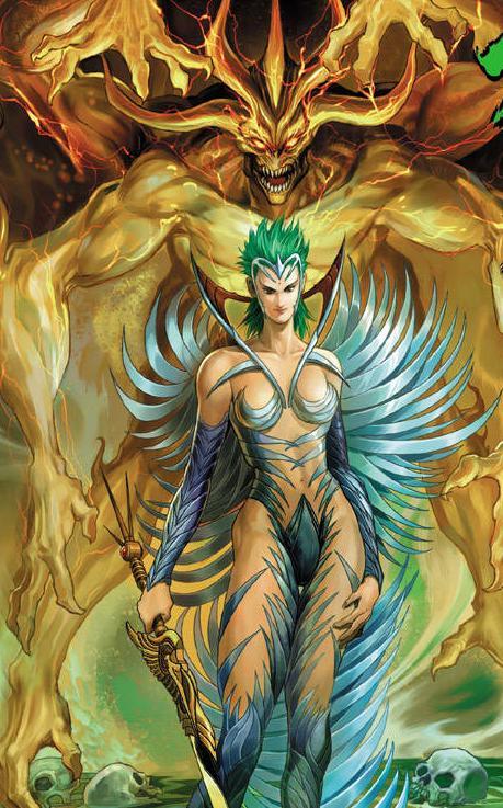 排在第九位的是天誅,西方邪神羅剎的妹妹,黑母用自己九個兒子的骨血打造的神兵,邪惡至極,是漫畫中唯一的遠程神兵,不僅速度快,威力強,還擁有九種異能,每一支箭擁有一種,新生之後,改成了吸收使用者壽命,吸收的越多,射出的箭就越恐怖。