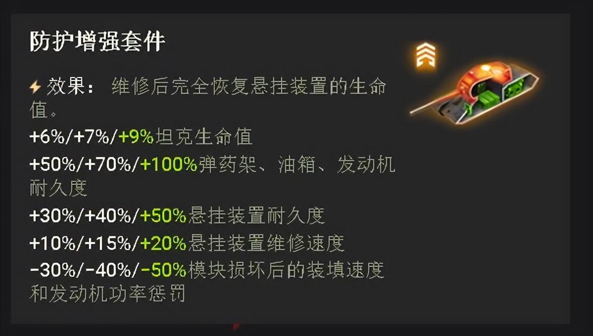 而面臨模塊血量這個老大難問題的蘇系重坦可以上個橙加血,同時獲得模塊血量和坦克血量的加成。