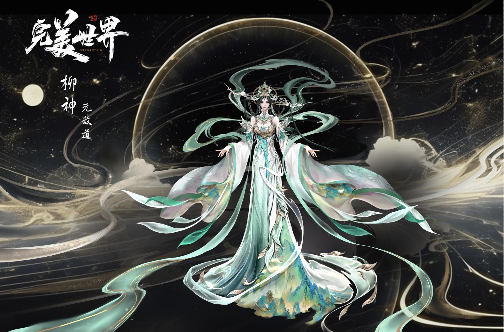 雖然僅僅是原畫設計圖,並非真正的建模,但是明顯能夠看得出來,柳神的無敵道造型與以往不一樣了,不再是簡單的白色長裙,而是搭配了很多青色元素,尤其是那碩大的拖地裙襬,更是搭配了青色的山峯圖案,有點國風水墨畫的味道。而且碩大的袖帶,青色的飄帶,以及金色柳葉式的抹胸,就連發飾都變了,不再是以前那樣繁重碩大,而是變得精緻小巧,五官顏值也是相當的不錯,整體來看,真的是風華絕代,讓人喜愛。