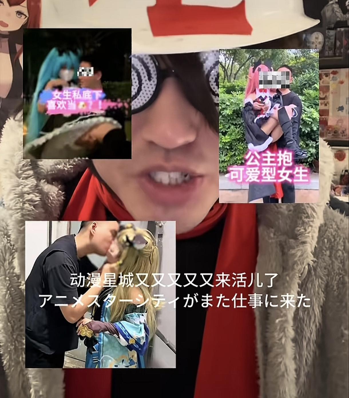 在廣州動漫星城,有人假借採訪的名義,對一些年紀較小的女coser進行搭訕,並且他們還不滿足於此,還會對女coser做出上手,親吻,摟抱等動作。