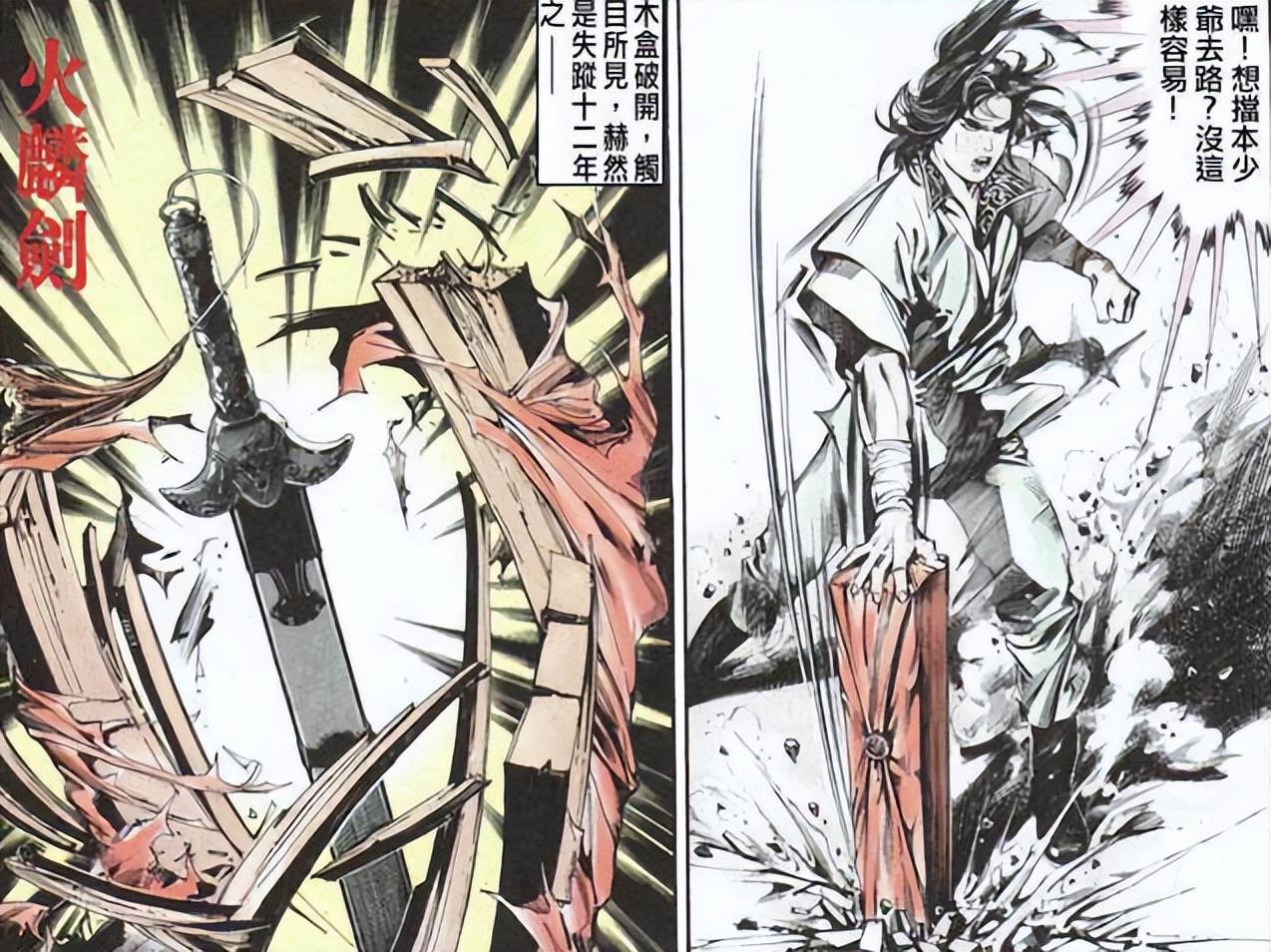 火麟劍是漫畫第一部,最早登場的一件神兵,但是它的第一次出場並無太過亮眼的表現,反而是後面落入斷浪手中,有了一次高光,當時斷浪用木盒裝着火麟劍,前往了天下會,劍聖敗給雄霸後,斷浪將木盒扔向天空,然後用強大的內力震碎木盒,火麟劍就此出世,一片紅光閃爍在衆人面前,同一時間,所有人都感覺到周遭溫度上升。