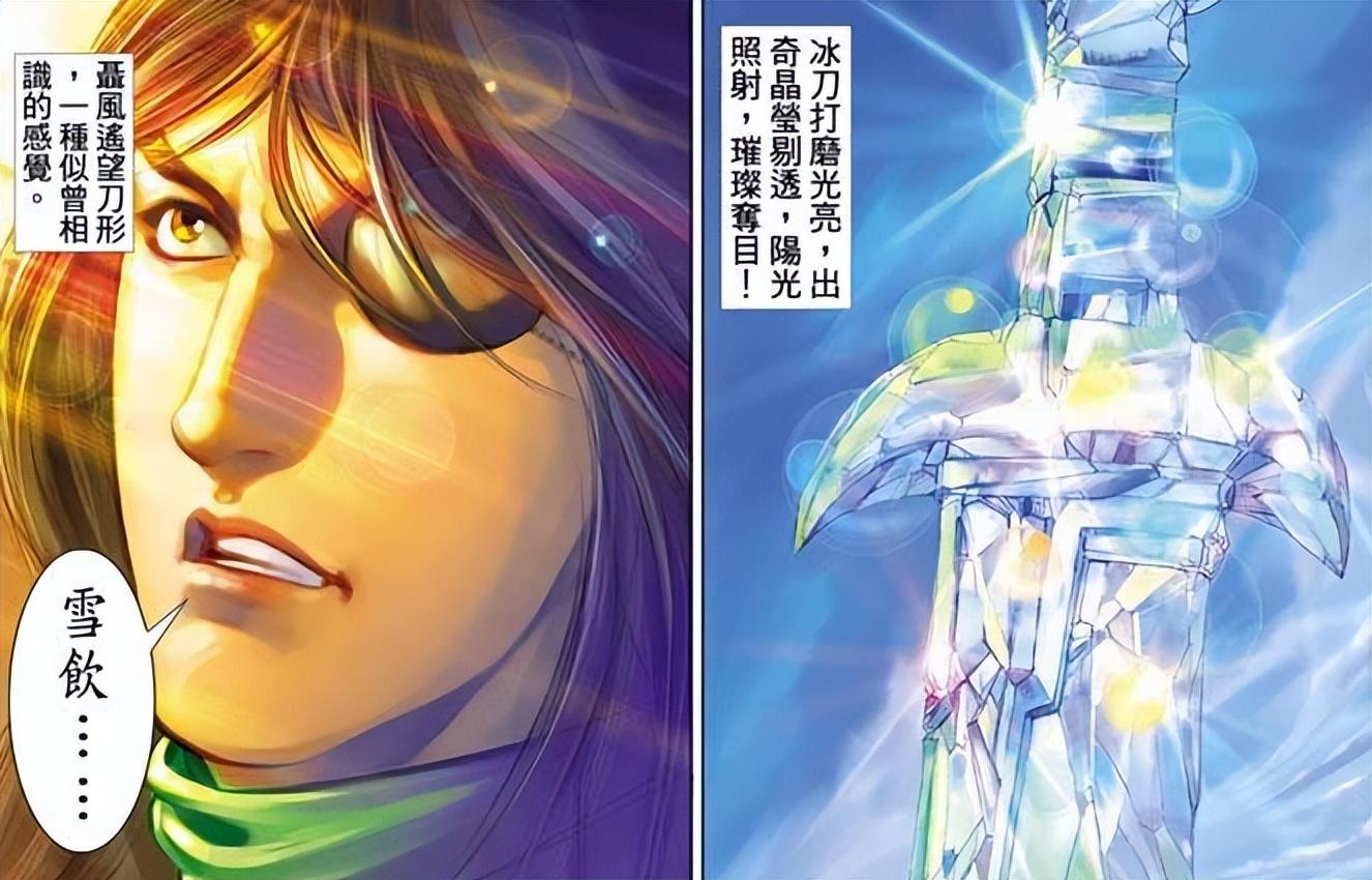 雪飲刀雖然早在漫畫第一部就出世了,但它並沒有留下讓人印象深刻的名場面,反倒是漫畫第三部,重新出世的hi後,相當的驚豔,當時第二刀皇與第三豬皇重鑄雪飲刀,將其封在了一座巨大的冰刀中,這把冰刀晶瑩剔透,巨大無比,橫亙在山峯之上,聶風歸來之時,雪飲刀崩碎了冰刀,自天空中飛入聶風手中。