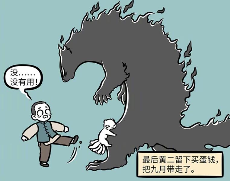 小孩哥倒是也很聽話,朝着黃二踢一腳,但是沒有用。因爲黃二身形實在是太大了,完全像一個大恐龍一樣,相當的帥氣和霸氣。而九月也是喜極而涕,牢牢抱住了師父的大腿。最終黃二也是成功救走了九月,而且還沒有傷害小孩哥,並且留下了買雞蛋的錢財。不得不說,這是黃二有史以來最靠譜的一次了。