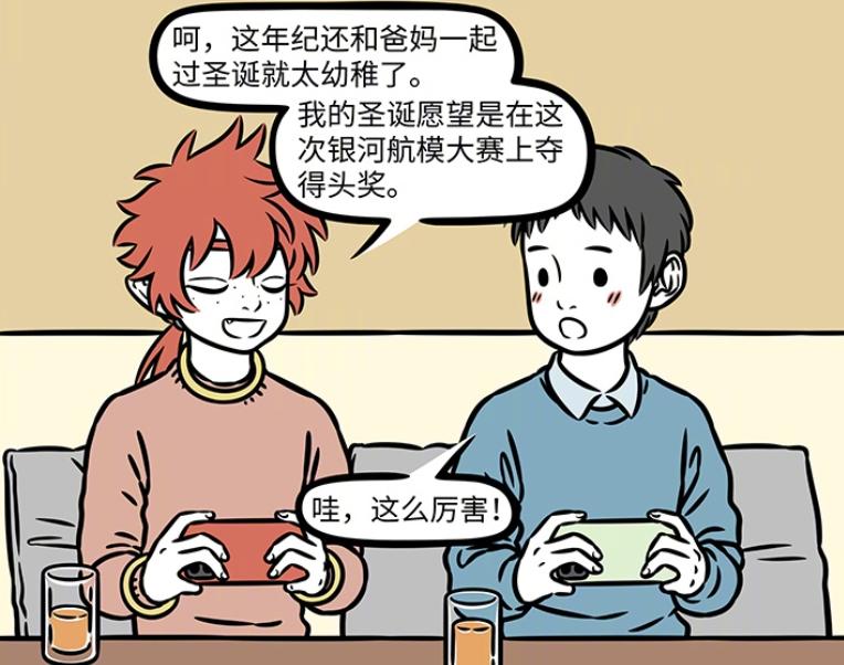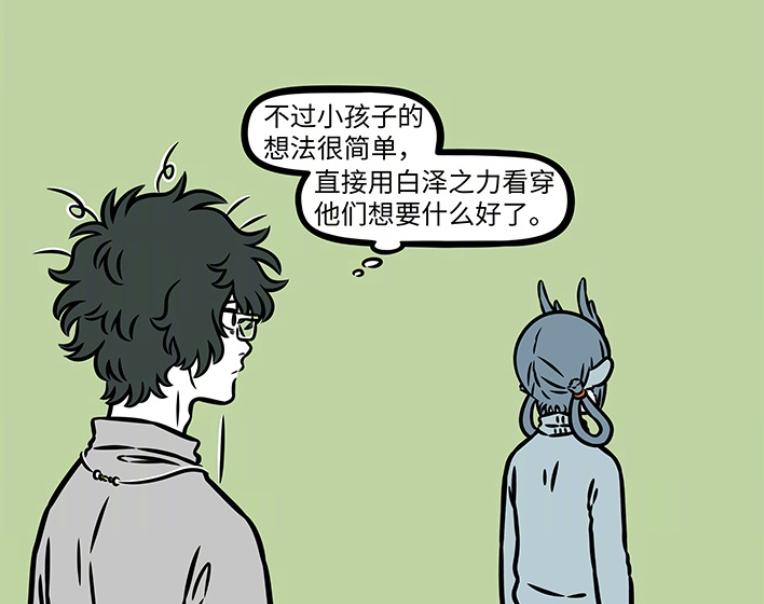 既然龍女的願望暫時看不透,但是白澤就轉換目標,盯上了紅孩兒。這個時候的紅孩兒正與自己的人類朋友,一起在客廳裏面打遊戲呢。而且人類小男孩也聊起了聖誕願望,告訴紅孩兒,自己想要和爸爸媽媽一起喫一頓大餐就行了。隨後便詢問了紅孩兒,而紅孩兒覺得他的願望有點幼稚,直呼自己願望是想在這次的銀河航模大賽上拿到冠軍。