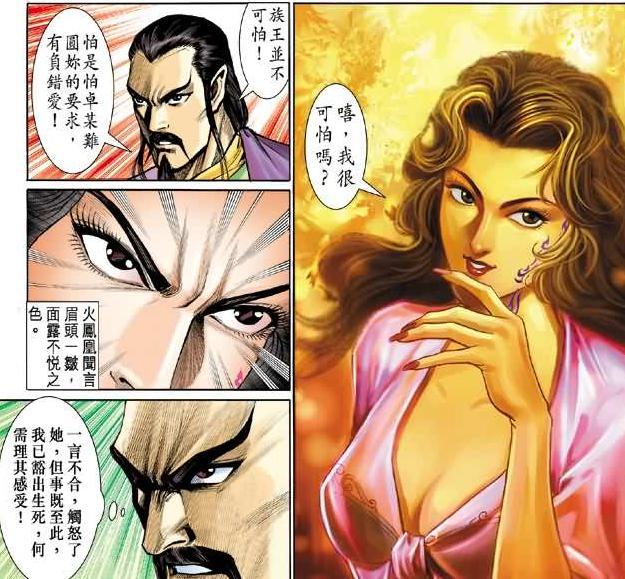 南疆苗族的族主,妖嬈美麗,開放熱情,雖然有了丈夫跟孩子,但還是豢養了一大羣的男寵,行爲放蕩,是無數小夥伴的啓蒙角色,每次看到火鳳凰,這個角色,我都會感嘆一句,真是便宜了神算子。
