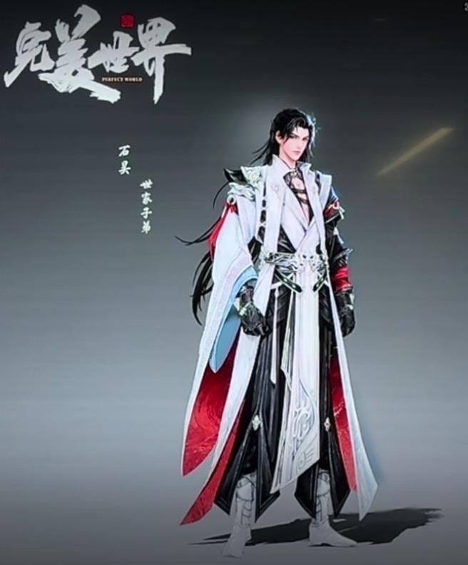 只見石昊的世家子弟造型,還是蠻帥氣的。黑色長髮不再束冠了,而是自然散落,前面還有一縷劉海,完美襯托臉型,五官也是優化了不少,顏值感覺更高的。而且石昊穿着黑白相間的勁裝,還有個大大的V領,露出了健碩的胸肌,並且外面還搭配了一件內紅外白的大長袍,佩戴着黑色和銀白色的肩甲,戴着黑皮手套,也少不了從小佩戴到大的紅色布條。同時穿着白色靴子,整體來看,倒是很有貴公子的氣息,渾身散發着高貴儒雅的氣質。