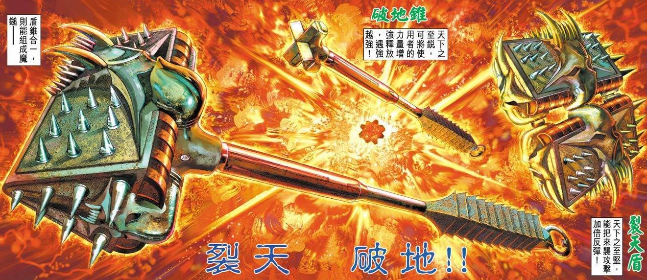 裂天破地代表了絕望。它由燕王在被滅鬼神擊敗並投入熔爐時感受到的絕望情緒催生而成。裂天破地由裂天盾和破地錐兩部分組成,擁有反彈與強化的異能。儘管裂天破地的能力非常強大,但其使用者是兩個小女孩,未能完全發揮其威力。