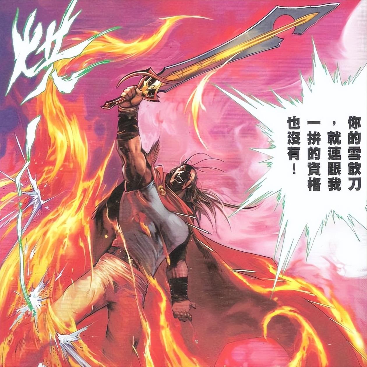而除了英雄劍,漫畫中沒有任何一件神兵,能與無情刀對戰,絕世好劍幾個回合,就被無情刀砍成了兩截,雪飲刀雖然沒有斷,卻也被無情刀砍的渾身是傷口,如果戰鬥持續的時間再長一點點,雪飲刀也必然會斷裂。