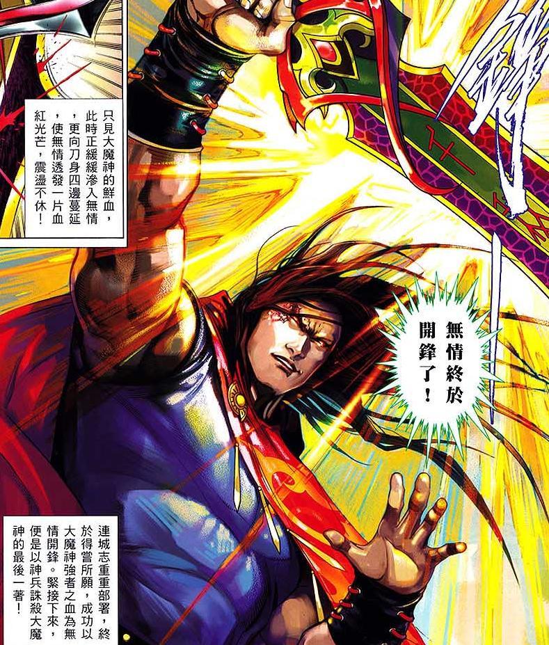 此時的無情刀尚未開鋒,威力不達預期,連城志使用計謀,成功用大魔神的鮮血給無情刀開了鋒,至此,無情刀纔算真正意義上誕生了,而按照漫畫中的說法,無情刀出世的時候,千秋大劫的劫心也會隨之出現,劫心不除,千秋大劫就只會推遲,而不會消失。