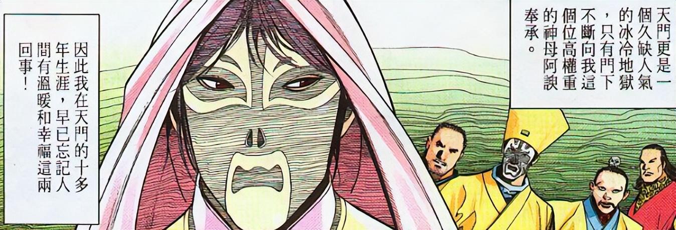 神母擁有極高的武學天賦。大家都知道,神母自幼父母雙亡,流落街頭成了小乞丐。但她的武學天賦極高,帝釋天正是看中了這一點,將她帶回天門並收爲親傳弟子。從此,神母在天門的地位變得一人之下、萬人之上。