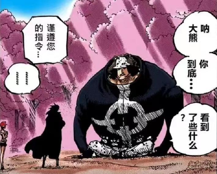 當然這裏還是存在一定的轉機,首先是熊作爲貝加龐克改造的天龍人奴隸,能成功被薩博帶回本身就有些蹊蹺,在七武海實力設定得到鞏固後,熊的實力應該是介於三災和四皇之間這個級別,如果他完全聽從天龍人命令,薩博一行應該是沒有能力救出熊的。能救出熊,並且在面對革命軍時是一副待命的狀態,多少說明了熊的設定有許多疑問,這裏可能與熊和貝加龐克的改造約定有關,其中不排除具備恢復自主意識的一些約定設定。