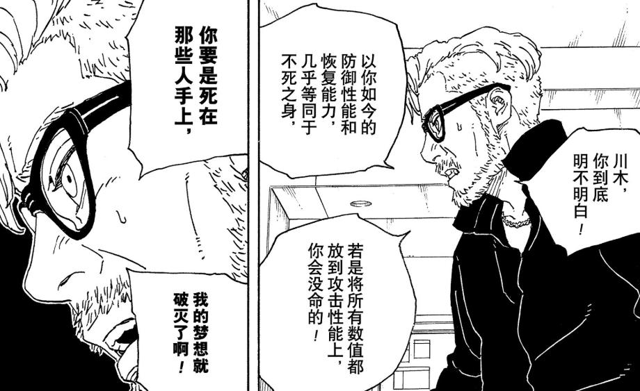 還記得漩渦博人與川木在火影岩石上會面,兩個人達成合作的時候,博人吐露了一個祕密,那就是川木的身體被阿瑪多改造過了。原來川木過了兩年,一點戰力都沒有提升,主要是阿瑪多擔心川木死亡,影響到自己女兒的復活,所以給他設置了限制器,將川木的攻擊能力設置在正常水平,而防禦值卻拉到最滿。