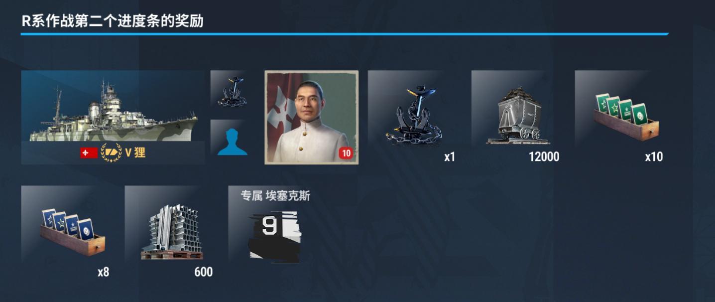 現在進行中的第一期通行證是“R系作戰”,獎勵也是非常不錯。如果解鎖了第二進度條的話,可以免費獲取一位10技能點的指揮官加上一艘五級的輕巡洋艦,還有1.2萬煤炭和600鋼鐵。