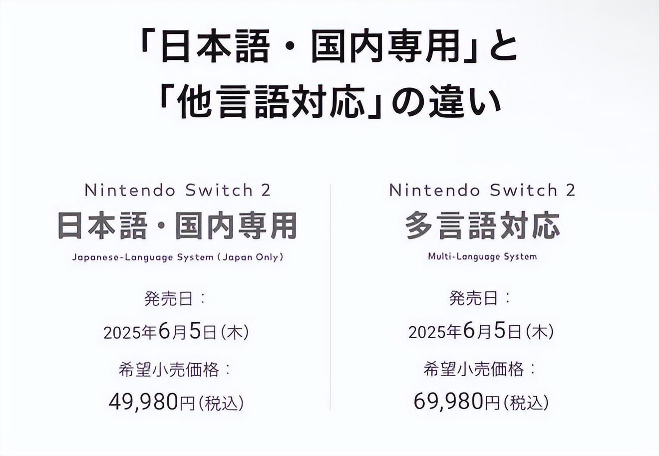 另一個大問題就是NS2的定價相當離譜,甚至於到了一個逆天的地步。日版售價約2474元人民幣,且系統鎖區,僅支持日語,迫使其他地區玩家爲用自己國家的語言遊玩,而去買其他多語言版本。而其他語言版本定價更高,像港版高達3234元,差價近千元。