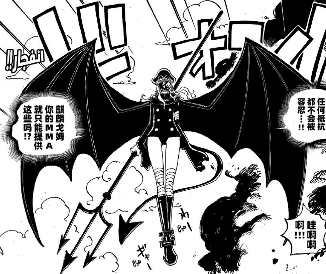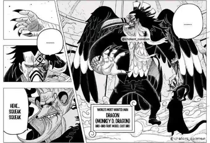 漫畫中,龍的能力昭然若揭!乃是幻獸種鳥鳥果實風神鳥形態,操控風雨雷電之力。其對手爲新晉五老星之加林聖,其果實非繼承土星聖之牛鬼形態,而是罕見老鼠之種,亦屬幻獸級別。
