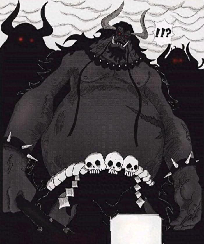 伊姆大人通過附身在軍子身上而對巨人族展開行動,她利用惡魔果實能力直接控制了巨人族的東利、布洛基等巨人戰士,讓他們化身爲巨大的惡魔怪物,體型堪比奧茲。這讓我們對伊姆大人的惡魔果實能力提供新的信息,百分百幻獸種,是傳說中的撒旦形態? 還是以龍有關的能力呢?