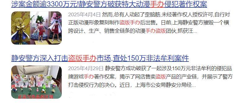 你看吧,近些年,凡是涉及到二次元動漫手辦被抓的商家或者廠家,十個裏面有十個都是盜版的。