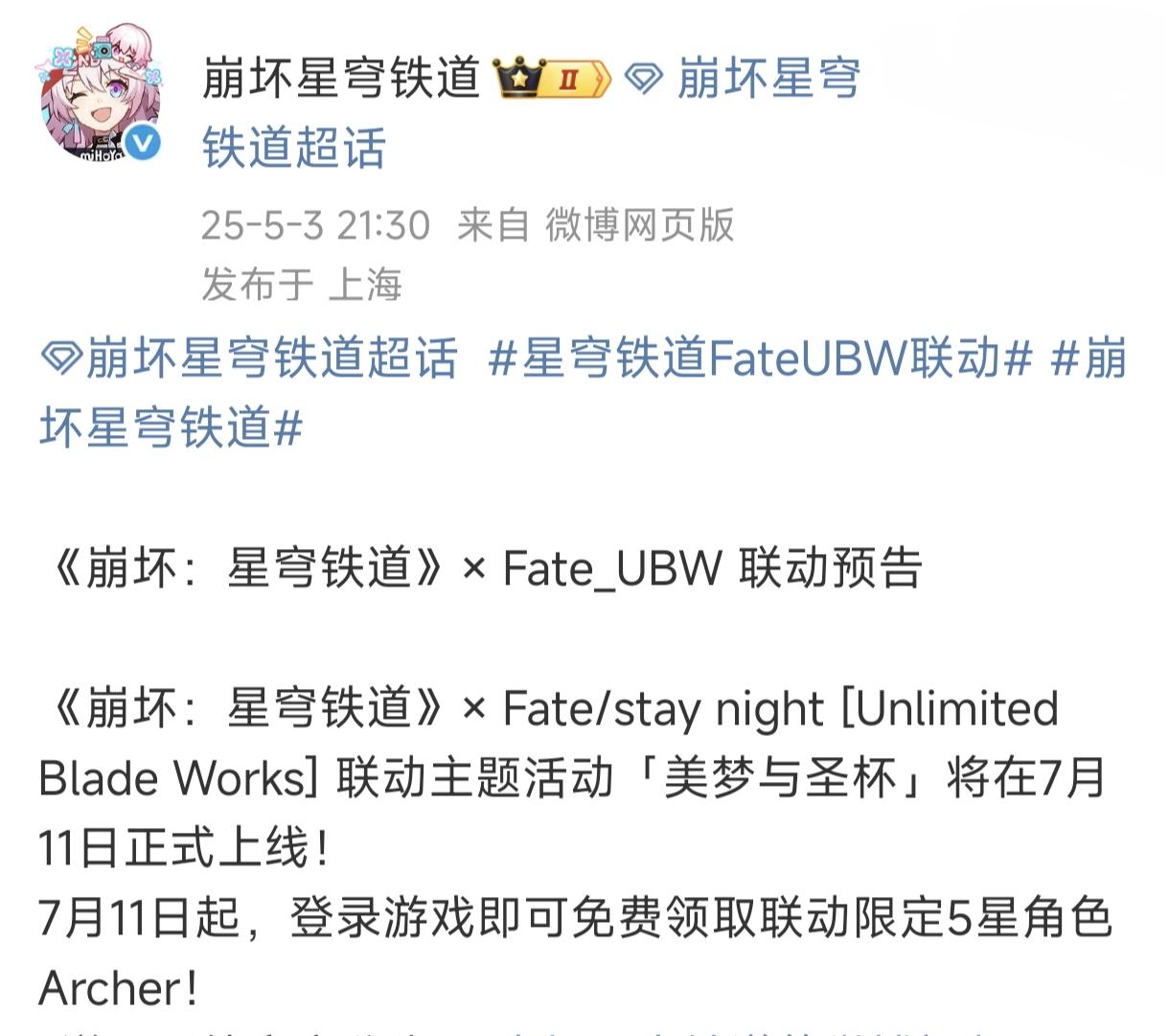 導讀:早在去年的時候,國內熱門遊戲《崩壞星穹鐵道》官方就官宣過,要和日本著名IP《fate》進行聯動。