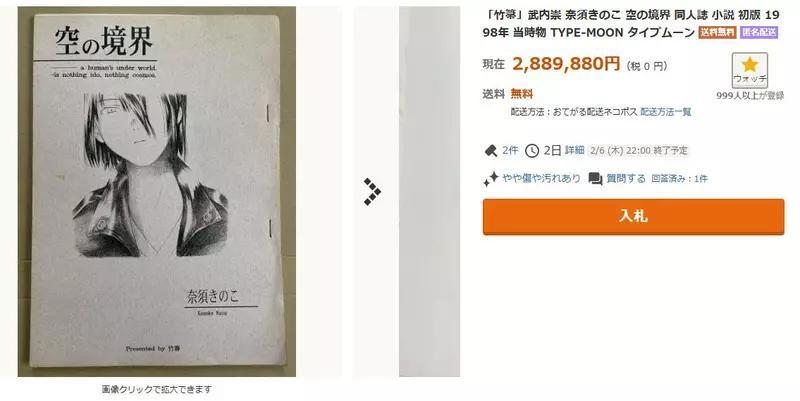 比如今年2月,日本拍賣網站上一本看似普通的同人誌,以288萬日元起拍,最終以500萬日元(約合人民幣24萬元)的天價成交。