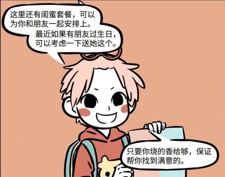 比如近段時間有朋友過生日,就可以送朋友這個套餐,能夠讓她儘快找到心意相通的另一半,而後月老又補充道,只要瓦陶陶燒的香足夠多,足夠有誠心,一定會幫她找到滿意的對象