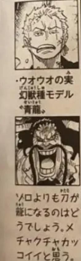 而且在SBS中尾田也是把草帽一夥那些沒有喫惡魔果實的船員,提供了一個他們最合適什麼樣的惡魔果實能力!其中索隆就是青龍形態!