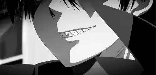 這看起來不是邪惡的笑容,而是一種自然的笑。所以對應巨人篇的角色,我個人聯想到索隆。索隆是非常喜歡冷笑的一個角色,是期待、自信。