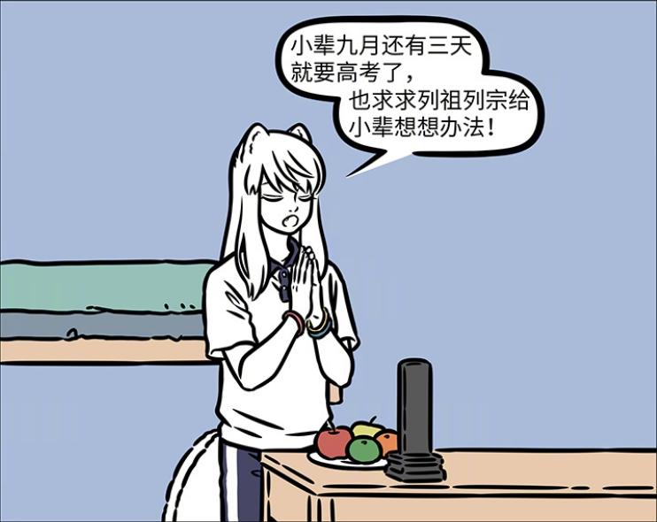 雖然平時有認真學習,但隨着考試臨近,九月還是免不了緊張和敏感,開始將成績寄託在玄學上,甚至還特意給爸爸媽媽準備了高考服裝,分別是旗袍和紫色內褲,寓意着旗開得勝和紫腚能行