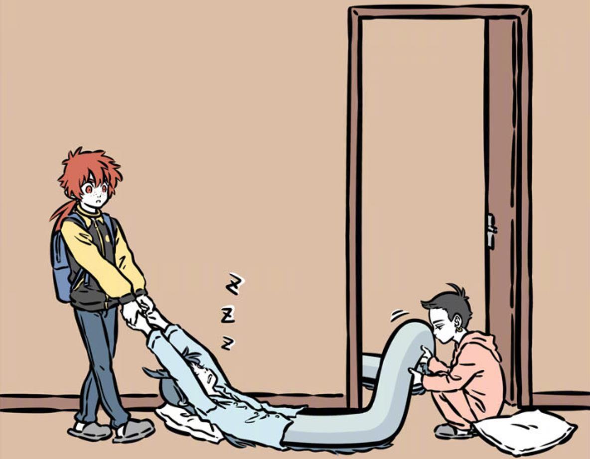 不過與紅孩兒早早起牀準備好一切不同,臨近出發時間,龍女還依舊賴牀,即使紅孩兒已經從牀上將她拖到地上,依舊沒有吵醒龍女