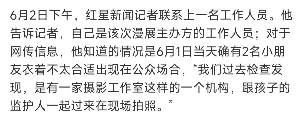 雖然現場漫展主辦方,在接到舉報後,第一時間制止了女童等相關人的行爲,但這起事件背後所引發的爭論再一次登上輿論風口。