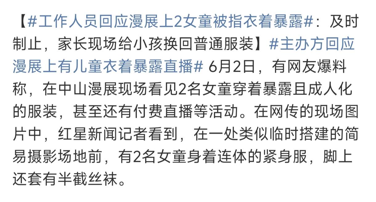漫展兩女童衣着暴露,傳媒公司付費直播,家長現場默認行爲?