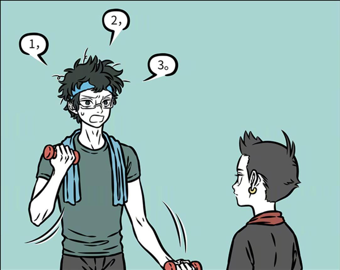 很快白澤就換上運動套裝,開始舉啞鈴訓練,而哪吒則在旁邊監督白澤運動