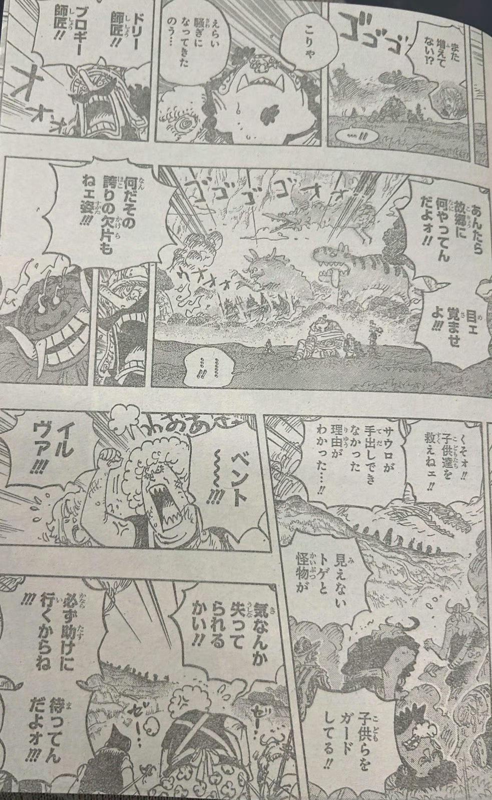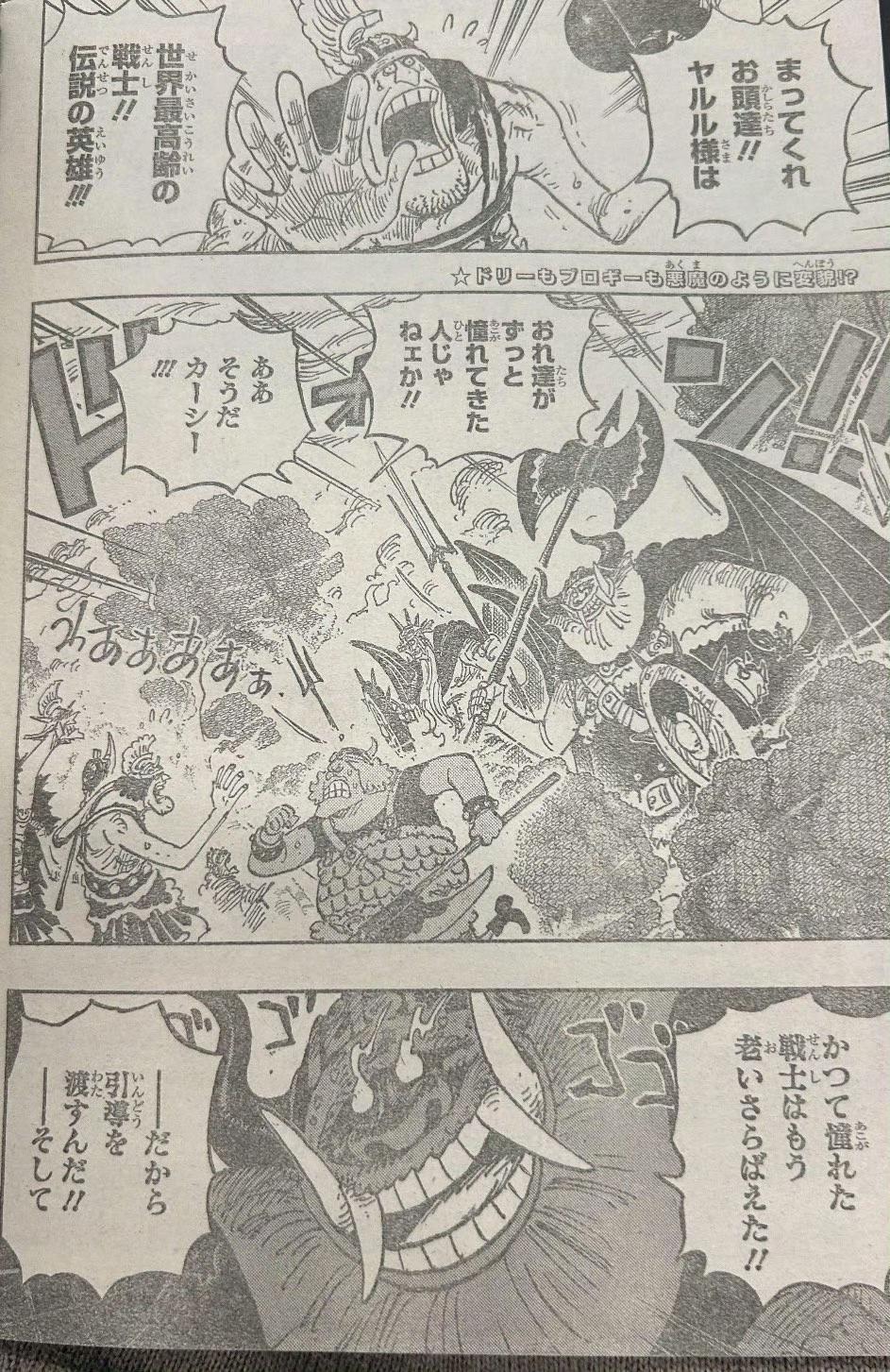 麒麟戈姆聖和索瑪茲在對話,我們也看到了大量妖怪、巨兵惡魔團正在穿過森林,抵達亞魯魯所在位置。而伊姆附身在軍子身上也再一次露臉,她還是想要支配、統治巨人族!這就是她一直以來在用的手段,與路飛的自由形成了鮮明的對比,難怪當年會跟喬伊波伊幹架。