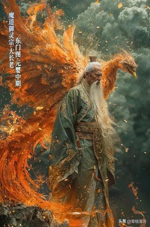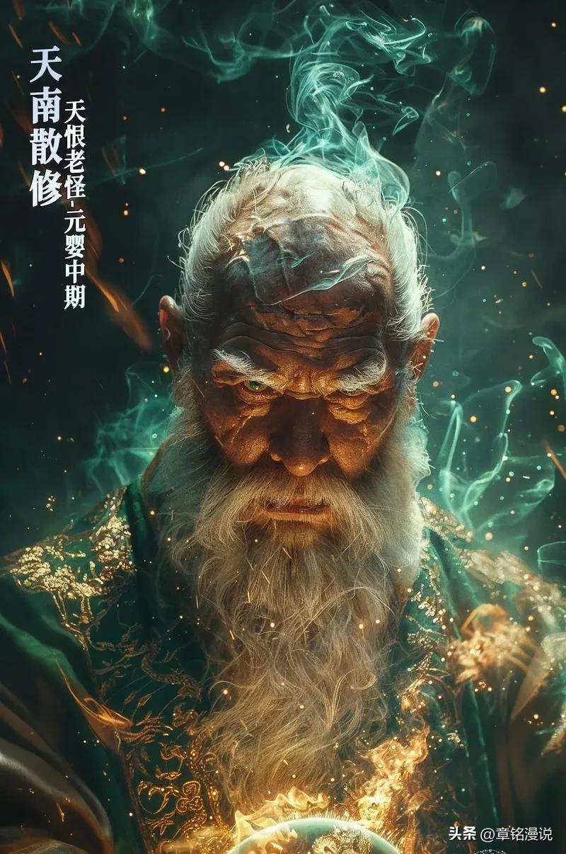元嬰中期巔峯散修,身懷金色飛劍與青犀甲,乃蒼坤上人後裔,身着紫蟒錦袍,頭帶碧玉高冠,長髯齊胸男子形象。