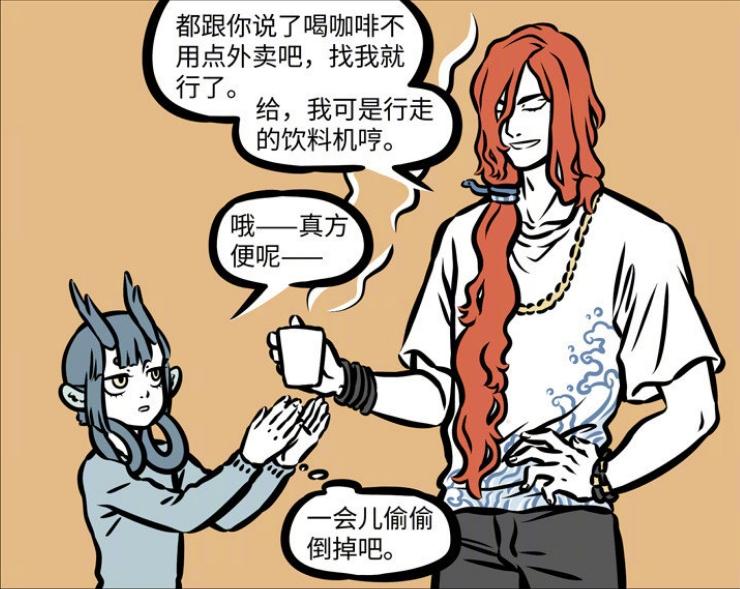 隨後共工便將熱騰騰的咖啡遞給龍女,隨後更是滿臉自豪地表示自己之前已經跟龍女說了咖啡不用點外賣,直接找他要就可以了,畢竟他可是行走的飲料機