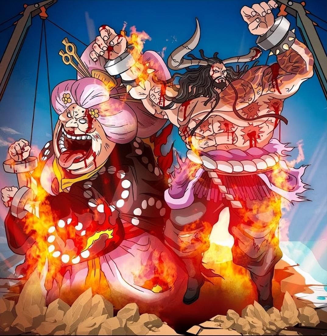也就是現如今的凱多大媽,兩人都是傷痕累累,也被黑鬍子用海樓石限制能力並吊起來,十分悽慘的樣子!這就是世界最強生物凱多、天生破壞者大媽的結局了嗎?