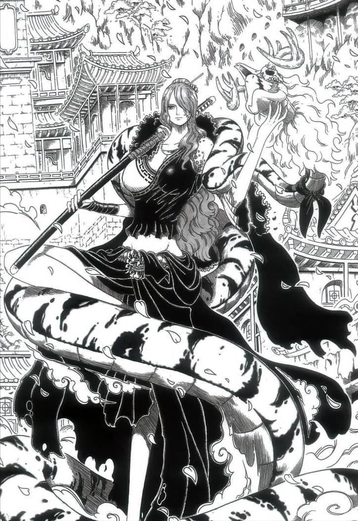 關鍵時刻,神之騎士團的副團長閃亮登場,竟是一位美麗的女性,她是否會是夏姆洛克的配偶?她的美貌和智慧,以及那傳說中的動物系人人果實幻獸種美杜莎形態,都讓人期待不已。