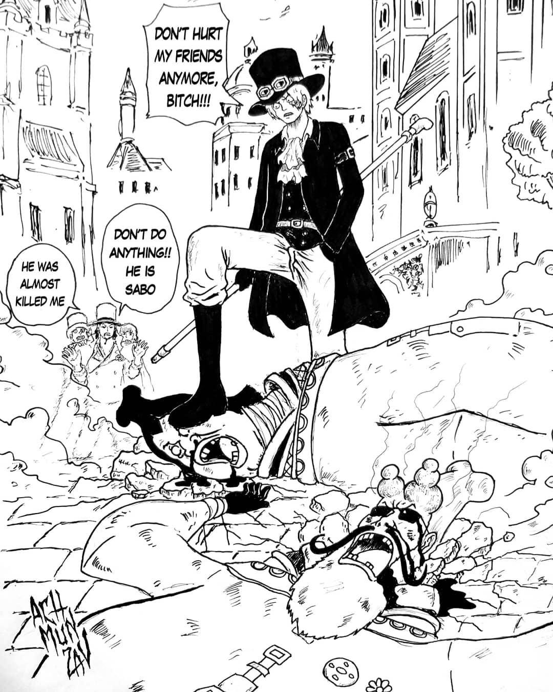 薩博在瑪麗喬亞展現了他的實力,擊潰多名天龍人,展現了革命軍的決心與力量。