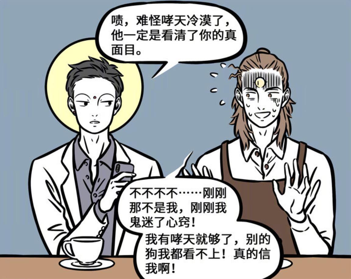 楊戩表示不知道爲什麼,哮天最近對他十分冷淡,估計是擔心這一切都是楊戩的錯覺,大士還特意讓楊戩舉例子