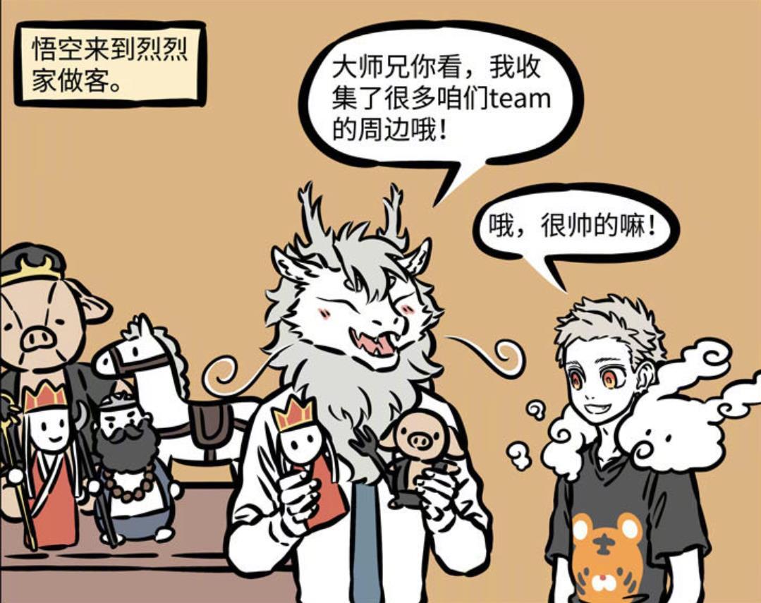 某天孫悟空去烈烈家做客,烈烈興奮地向他展示各種西遊五人組的周邊,而孫悟空也十分捧場,表示這些周邊都很帥。