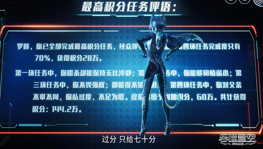 在審判後代子孫方面,羅峯可謂鐵血無情,但即使如此還是虛擬宇宙公司對他依舊不滿,本輪給出的評價也是四輪任務中最低的,直接導致羅峯的總體任務完成率只有70%